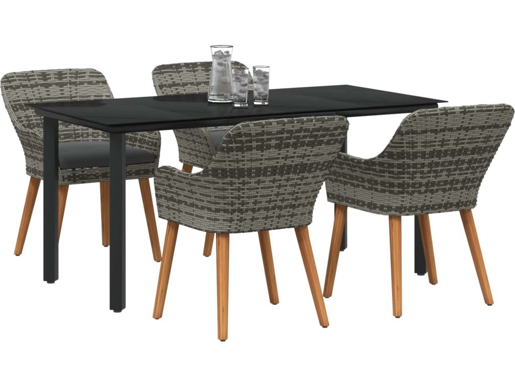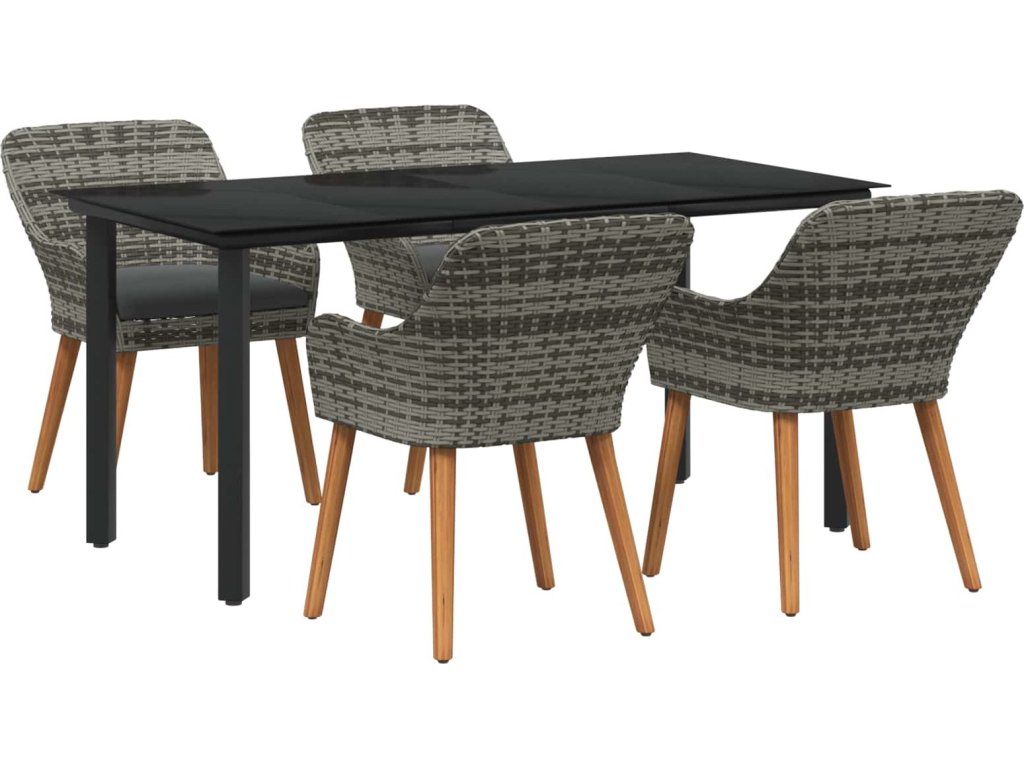 Zahradní jídelní souprava s polštářem 5 pcs Šedá polyratan [3261687]