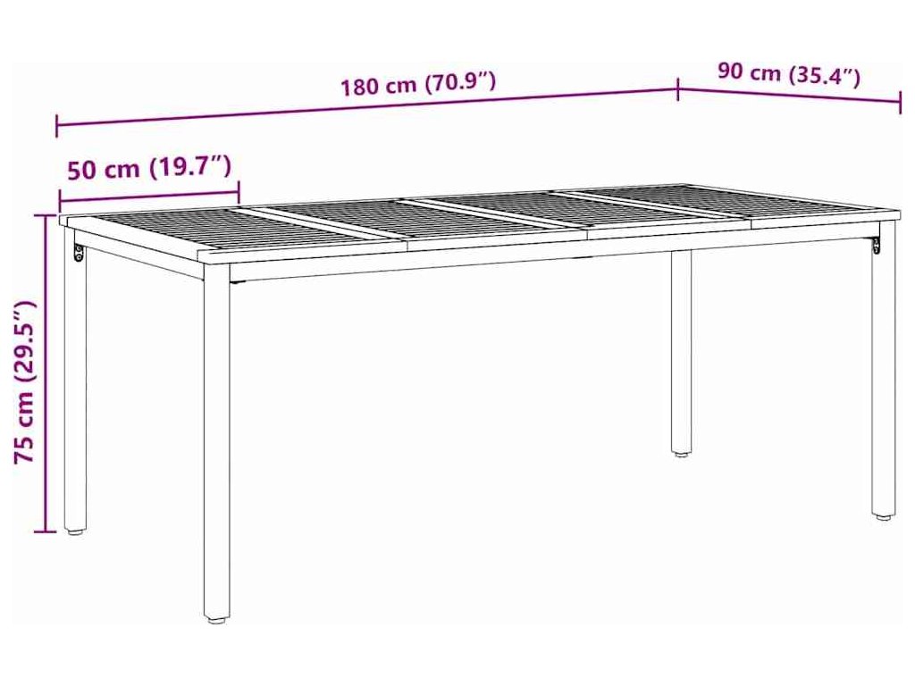 - 1 x Zahradní stůl: 180 x 90 x 75 cm (D x Š x V)