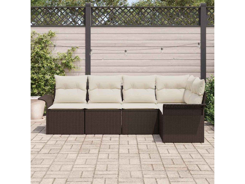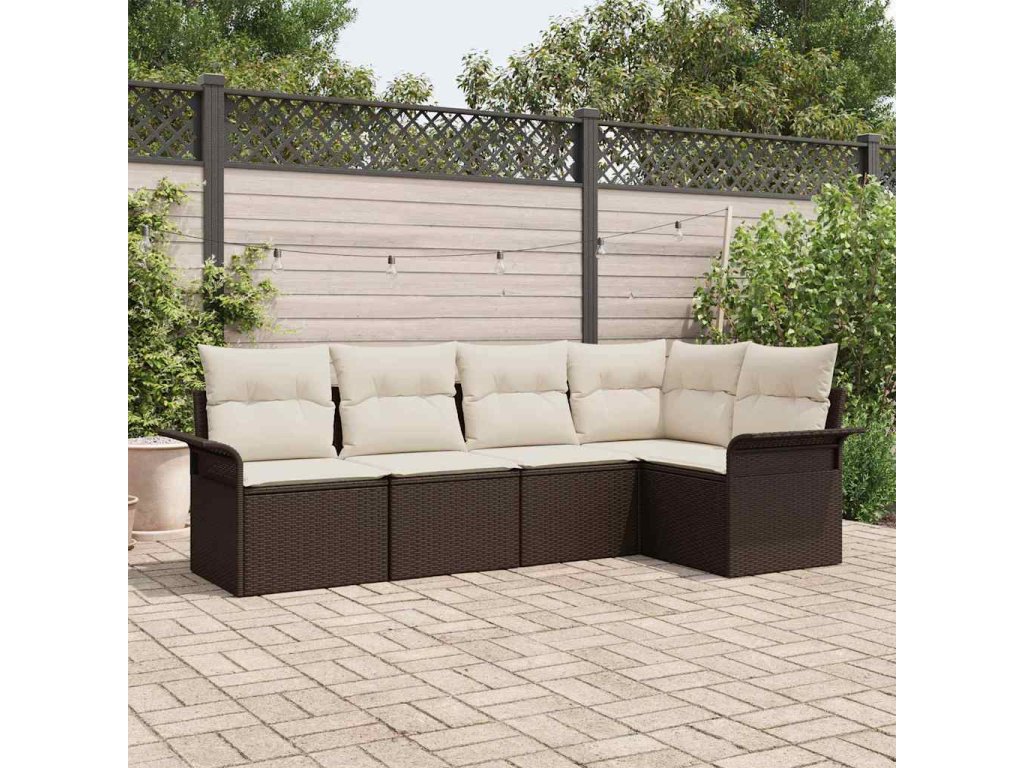 Sada zahradních pohovek s polštářem 5 pcs Hnědá polyratan [3345358]
