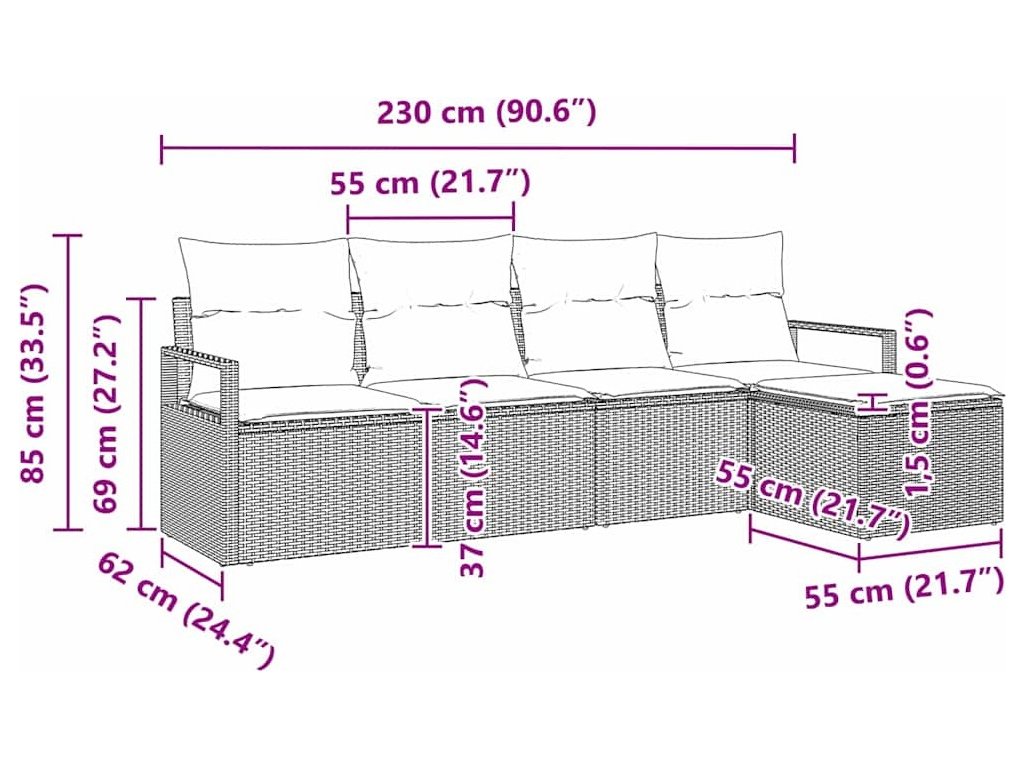 Tato zahradní pohovková souprava hladce mísí moderní design s funkčností, což dodává vašim venkovním prostorům šmrnc. Její čisté a přesné linie z ní dělají středobod vaší zahrady nebo terasy. Tato stylová souprava pozvedne vaše setkání, ať už si užíváte letní sluníčko nebo hostíte přátele venku.