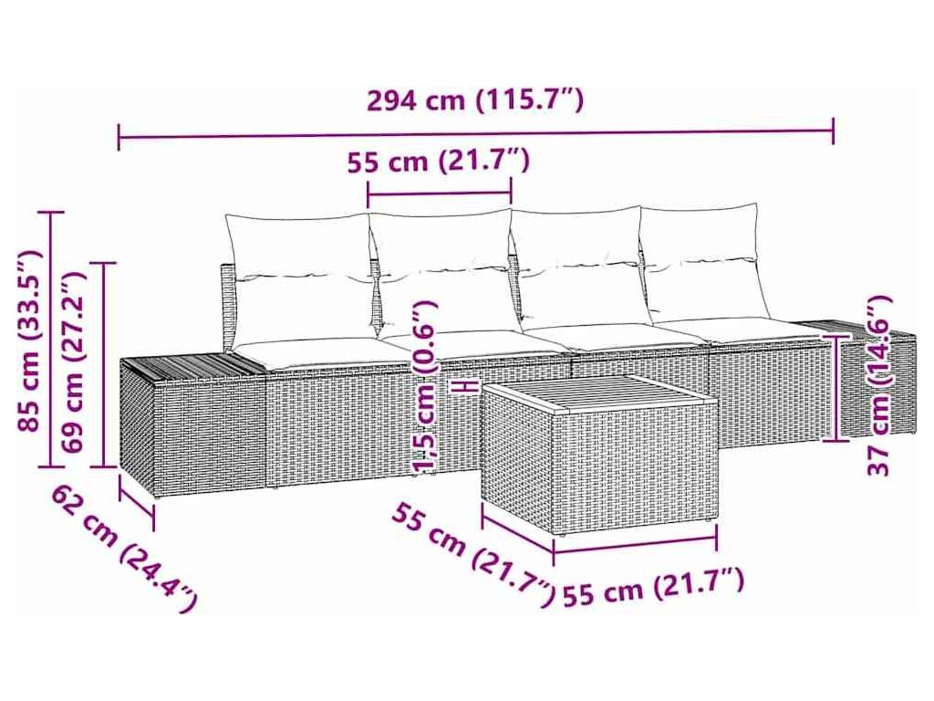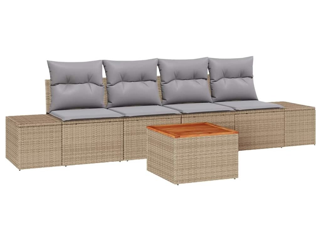 Sada zahradních pohovek s polštářem 5 pcs Béžová Poly ratan [3347889]