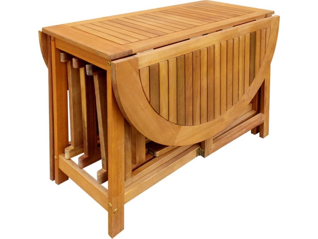 Skládací stůl a skládací židle mají robustní konstrukci a jsou vyrobeny z vysoce kvalitního akáciového dřeva s povrchovou úpravou z přírodního oleje, což činí tento jídelní set odolný, stabilní, odolný proti povětrnostním vlivům a snadno se čistí. Stůl i židle mohou být snadno složeny, pokud se nepoužívají, a stolky lze pohodlně ukládat pod stůl, takže nebudou potřebovat další úložný prostor.