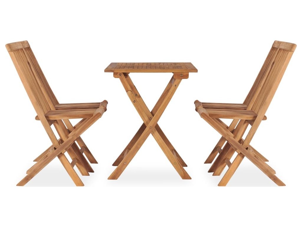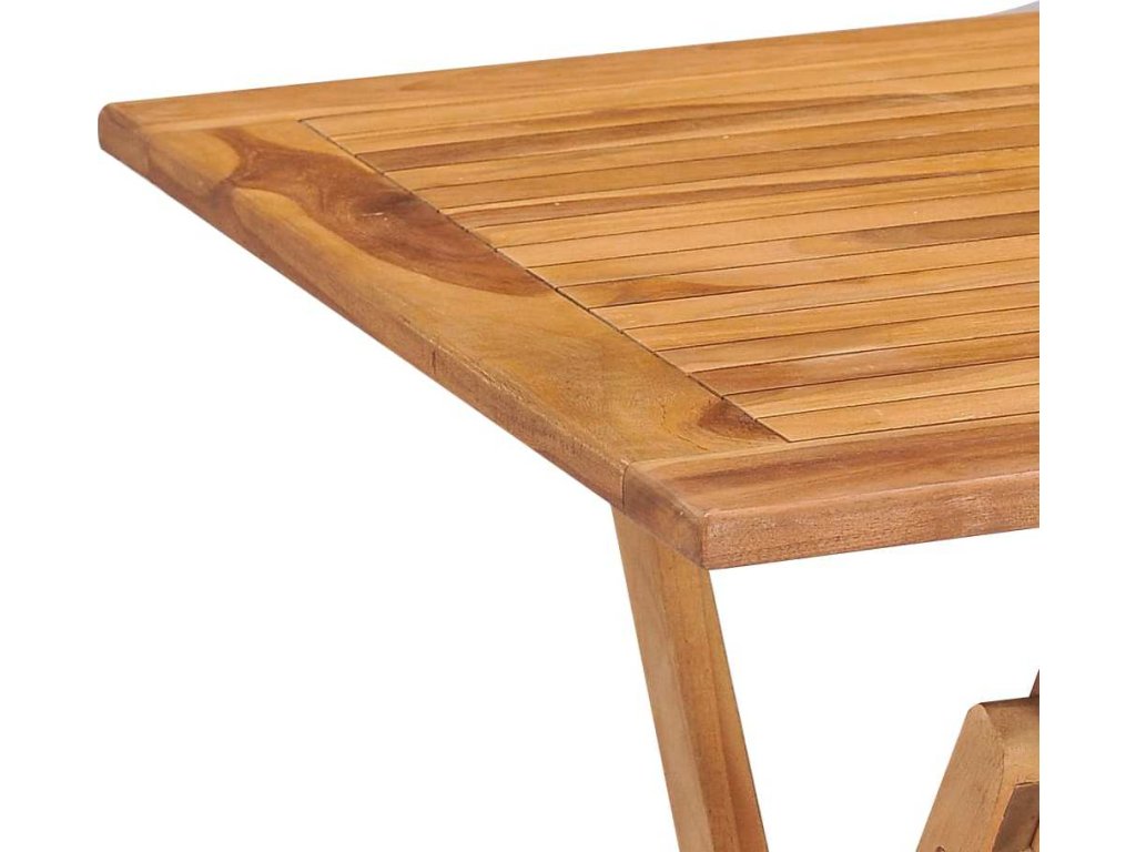 Nábytek je zhotovený z extrémně odolného teakového tvrdého dřeva, které již prošlo procesem smršťování, bylo uměle vysušené a poté jemně a dohladka obroušené. Toto dřevo je oceňované pro svou výjimečnou pevnost a klimatickou odolnost, a proto je zdaleka nejvhodnějším materiálem pro výrobu zahradního nábytku. Jedná se o skvělou volbu, pokud si chcete pořídit zahradní vybavení, které vám vydrží sloužit dlouhá léta. Když jídelní stůl a židle zrovna nepoužíváte, můžete ji složit a ušetřit tak místo.