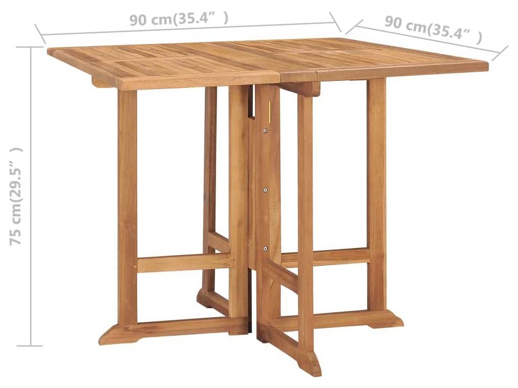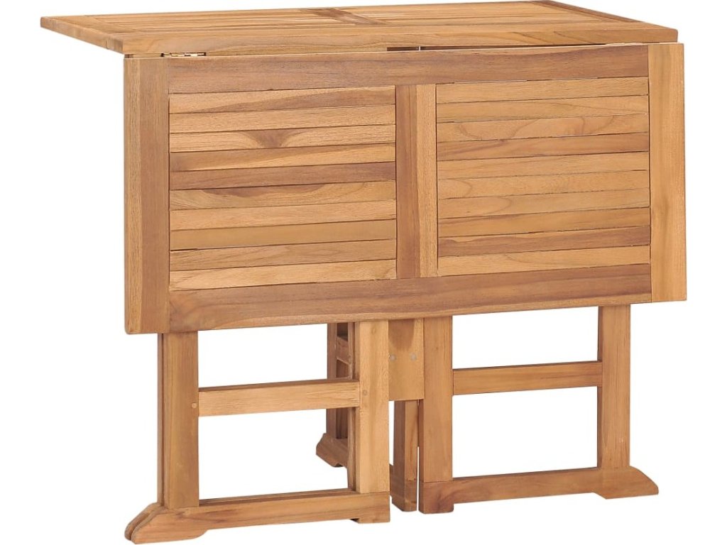 Nábytek je zhotovený z extrémně odolného teakového tvrdého dřeva, které již prošlo procesem smršťování, bylo uměle vysušené a poté jemně a dohladka obroušené. Toto dřevo je oceňované pro svou výjimečnou pevnost a klimatickou odolnost, a proto je zdaleka nejvhodnějším materiálem pro výrobu zahradního nábytku. Jedná se o skvělou volbu, pokud si chcete pořídit zahradní vybavení, které vám vydrží sloužit dlouhá léta. Když jídelní stůl a židle zrovna nepoužíváte, můžete ji složit a ušetřit tak místo.