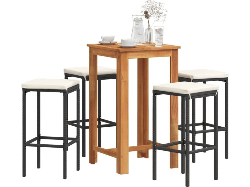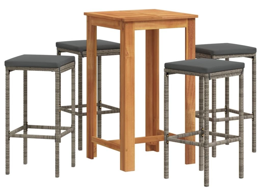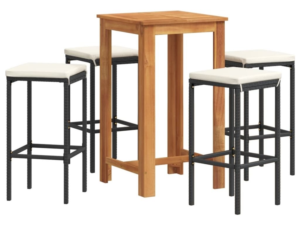 5dílný zahradní barový set masivní akácie a polyratan [3295271]