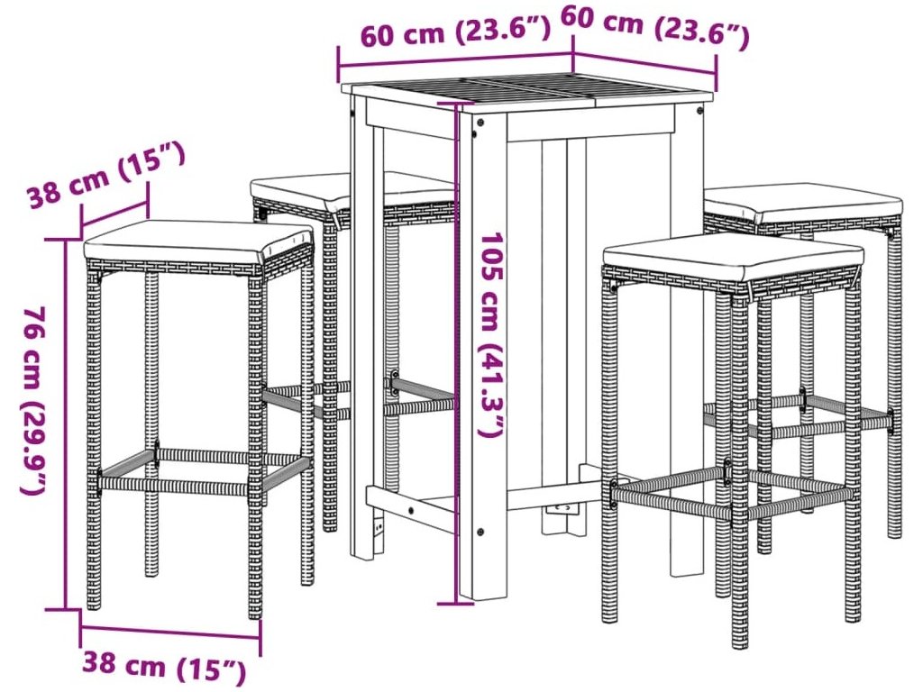 Tento zahradní barový set s elegantním a moderním designem představuje skvělou volbu pro stolování nebo relaxaci na zahradě.