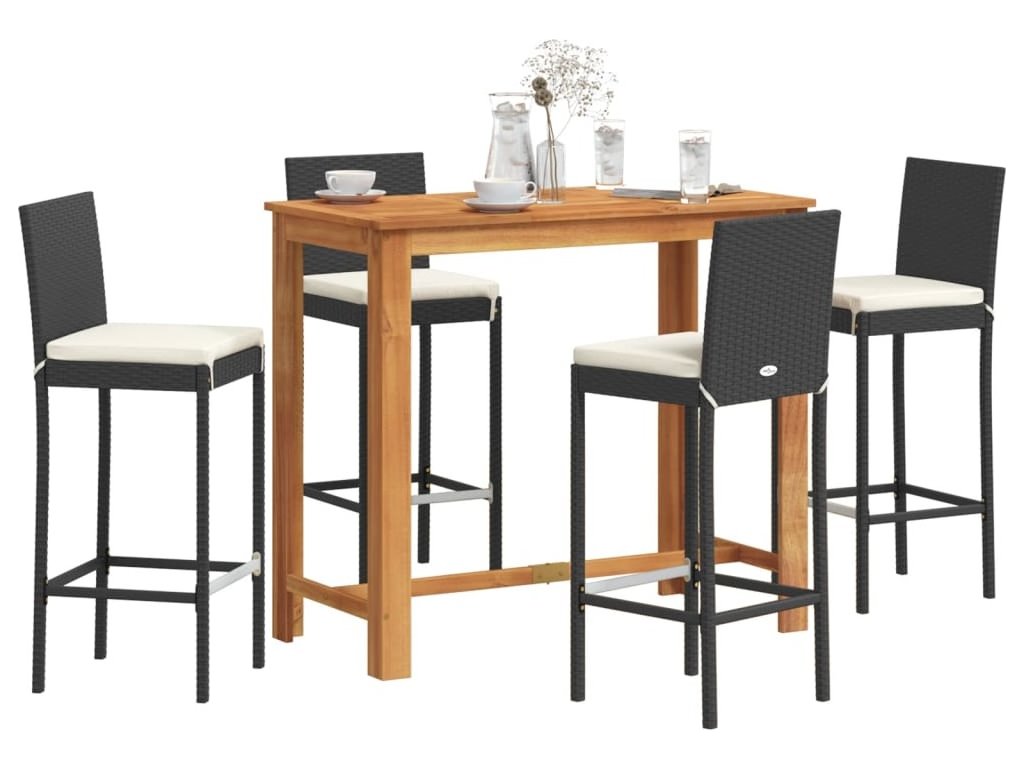 5dílný zahradní barový set masivní akácie a polyratan [3295278]