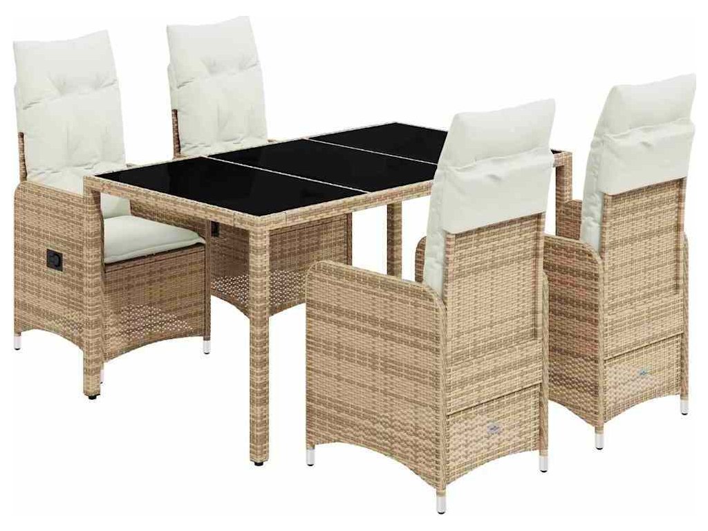 5dílný zahradní bistro set s poduškami béžový polyratan [3277098]
