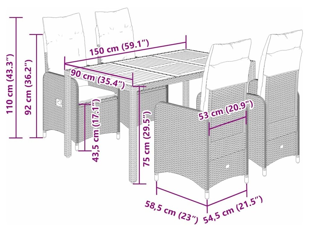 - Pohodlné sezení: Tento venkovní nábytek se silně polstrovanými poduškami a polštáři nabízí pohodlné sezení.