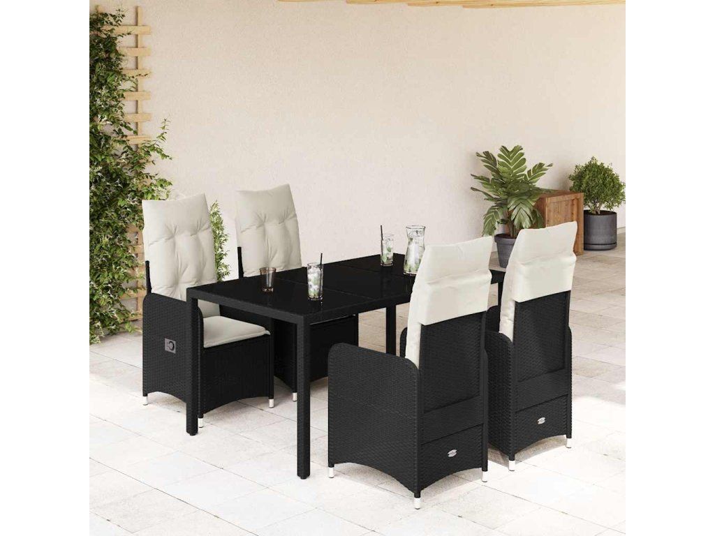 5dílný zahradní bistro set s poduškami černý polyratan [3276990]