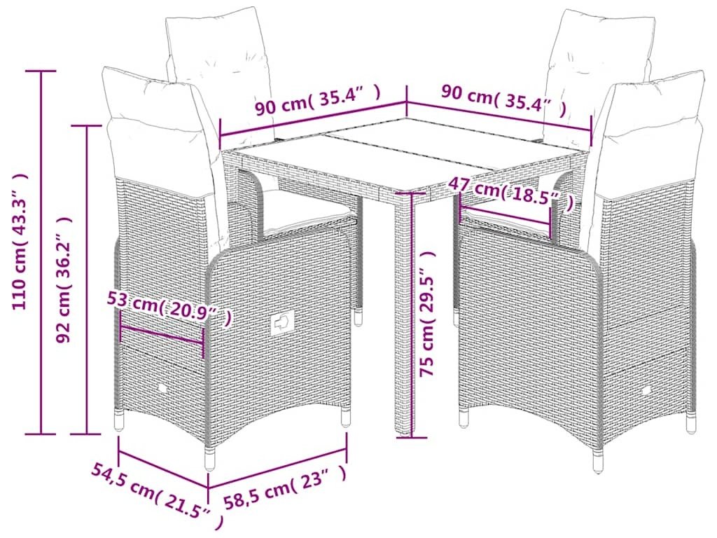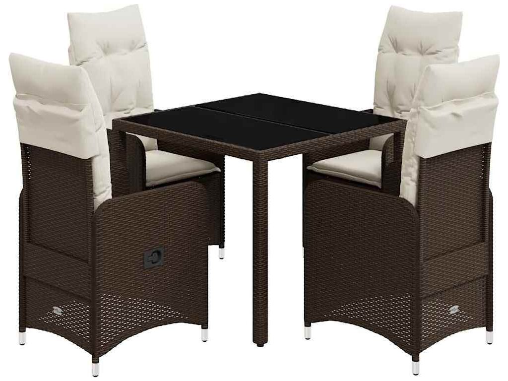 5dílný zahradní bistro set s poduškami hnědý polyratan [3277064]