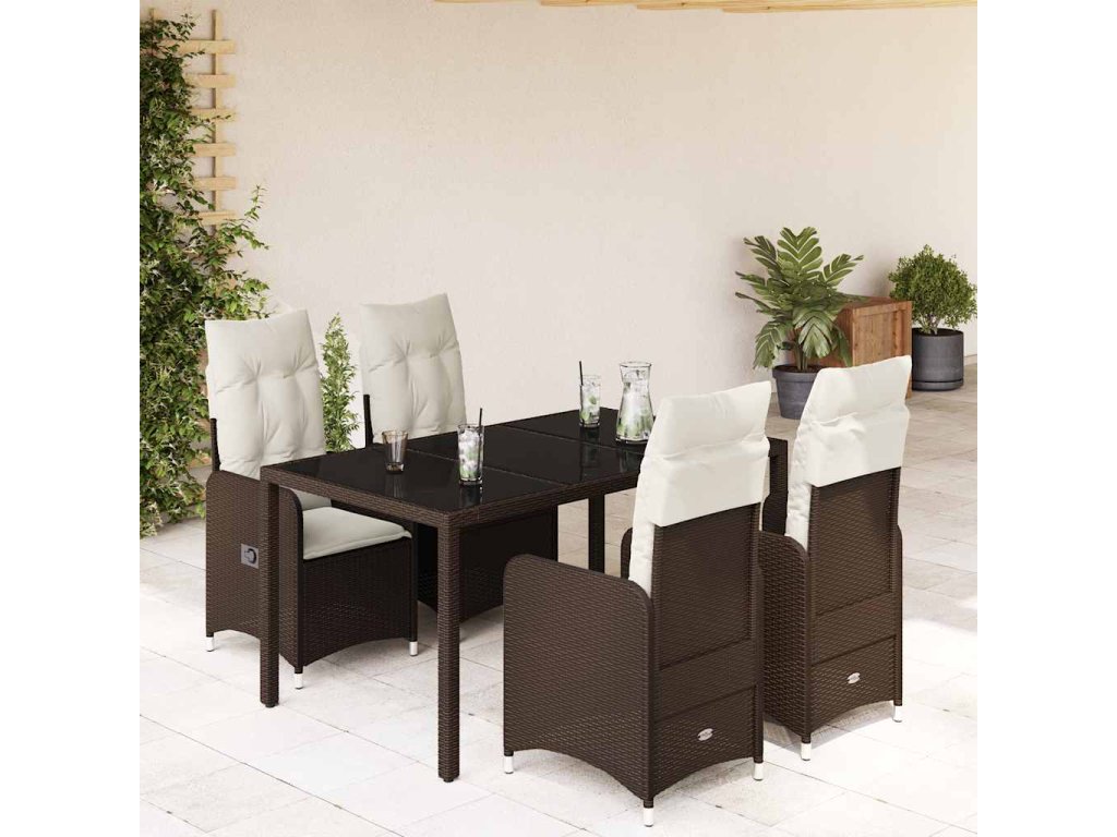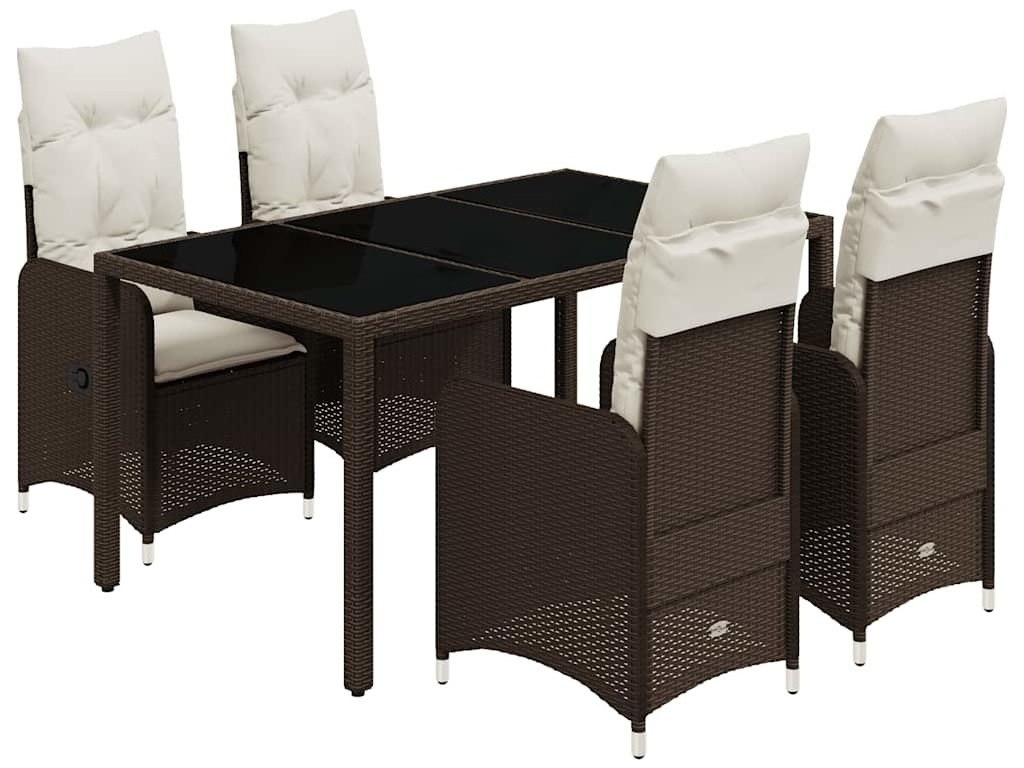 5dílný zahradní bistro set s poduškami hnědý polyratan [3277066]