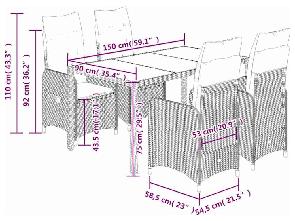 - Rozměry při poloze vsedě: 54,5 x 58,5 x 92 cm (Š x H x V)
