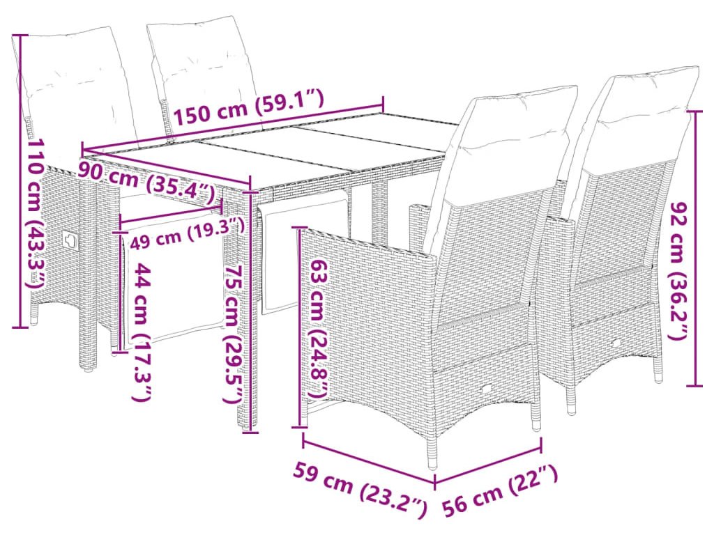 - Pohodlné sezení: Tento venkovní nábytek se silně polstrovanými poduškami a polštáři nabízí pohodlné sezení.
