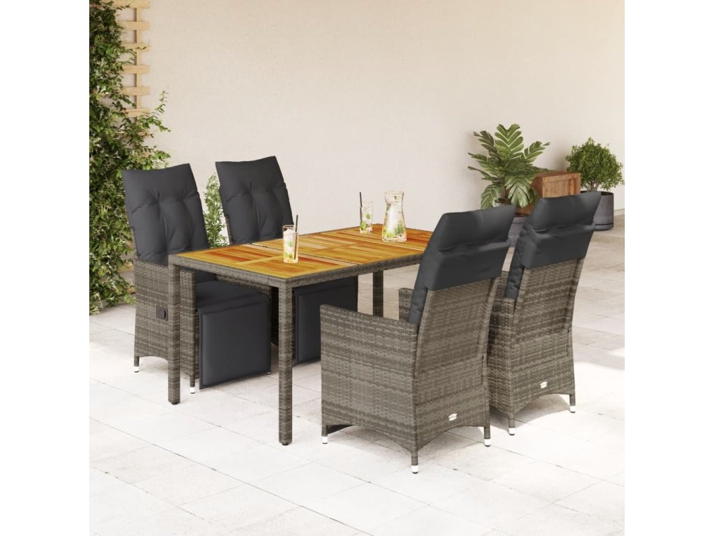 5dílný zahradní bistro set s poduškami šedý polyratan [3276887]