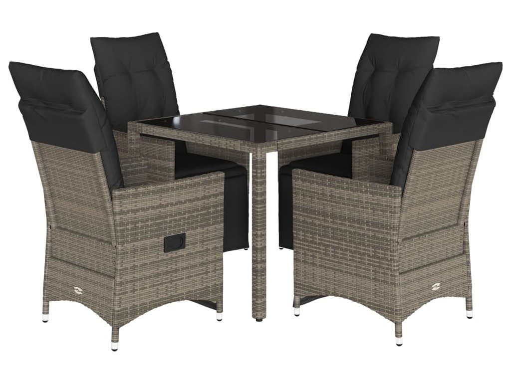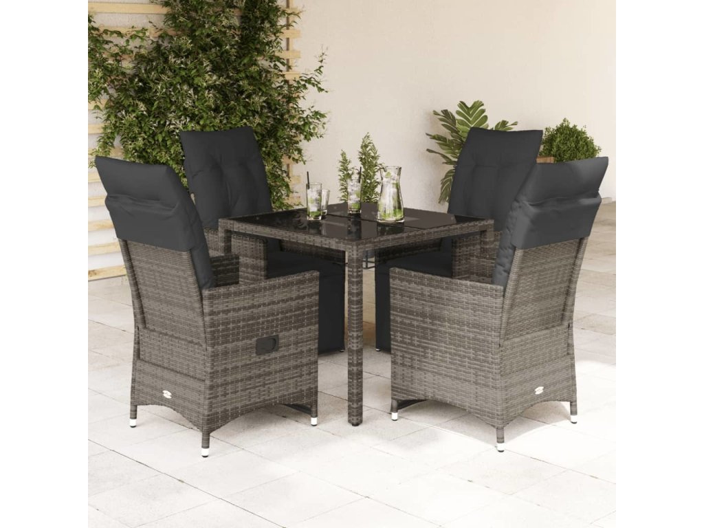 5dílný zahradní bistro set s poduškami šedý polyratan [3276894]