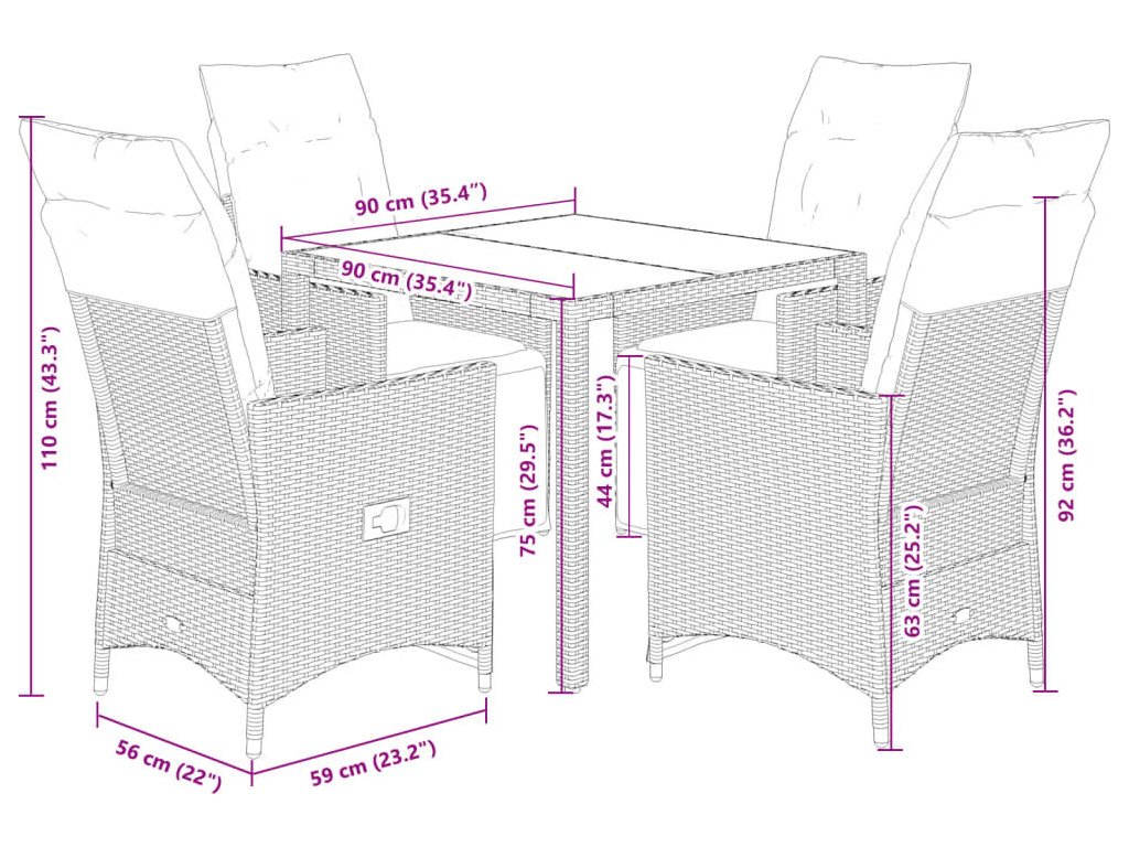 - Materiál: PE ratan, práškově lakovaná ocel, tvrzené sklo