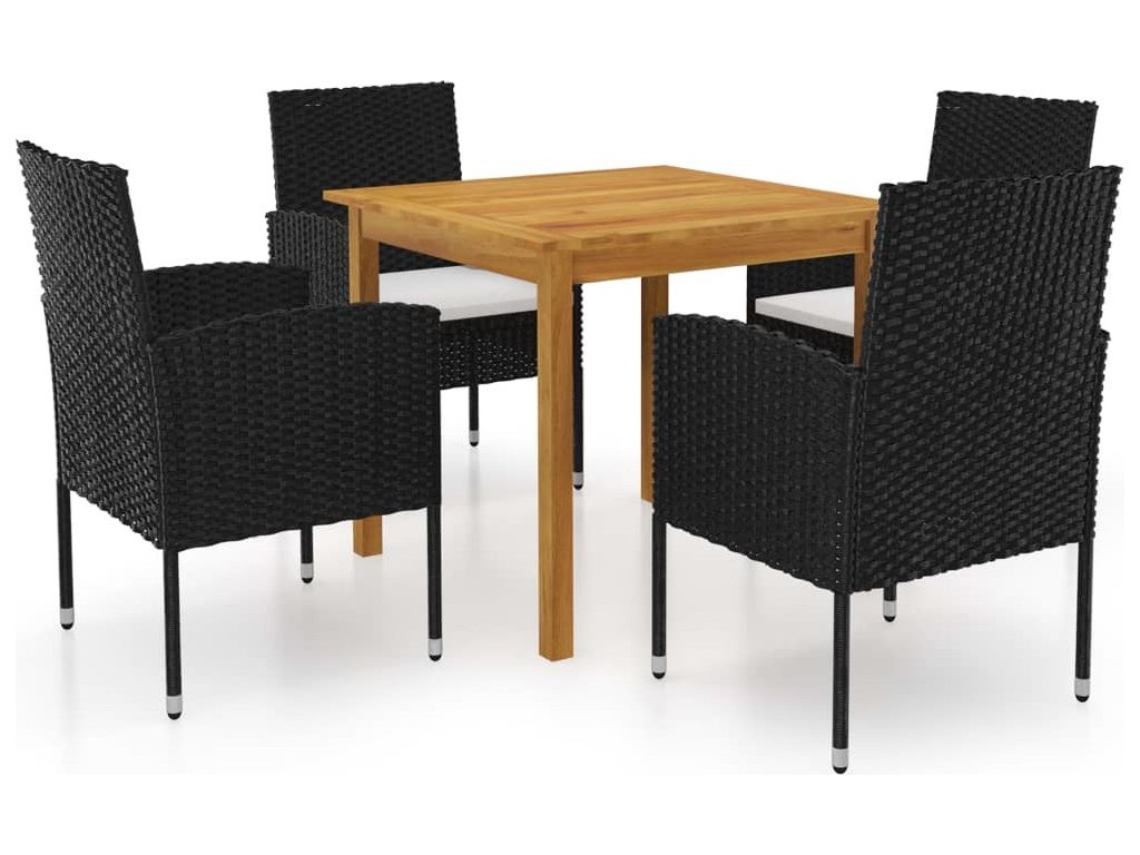 Jídelní stůl je zhotovený z masivního akáciového dřeva s olejovaným povrchem, takže je stabilní, odolný a nenáročný na údržbu. Jídelní židle mají rám z práškově lakované oceli, opletený PE ratanem, který výborně vzdoruje klimatickým vlivům. Dlouho vám proto vydrží a snadno je očistíte. Každé křeslo je opatřené odnímatelnou, hustě polstrovanou poduškou, která vám při odpočinku zaručí mimořádný komfort.