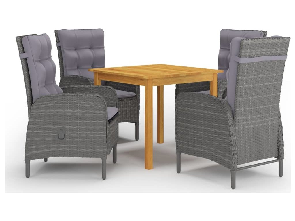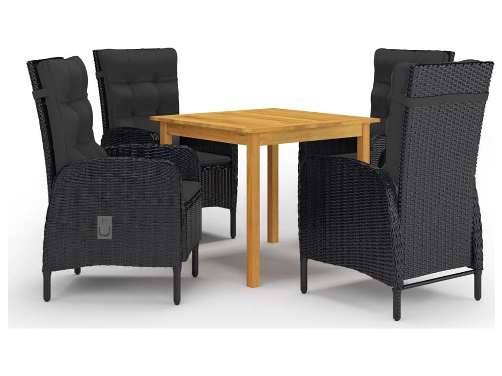 Jídelní stůl je zhotovený z masivního akáciového dřeva s olejovaným povrchem, takže je stabilní, odolný a nenáročný na údržbu. Jídelní židle mají rám z práškově lakované oceli, opletený PE ratanem, který výborně vzdoruje klimatickým vlivům. Dlouho vám proto vydrží a snadno je očistíte. Zahradní židle mají zaoblená opěradla a područky, které přispívají k většímu pohodlí, stejně jako jejich ergonomický tvar. Polohovací křesla vám navíc zajistí maximální komfort. Opěradlo lze naklánět zatažením za tlačítko na boku. Pro příjemnější posezení jsou součástí také podušky s potahy na zip, které se dají sejmout a vyprat.