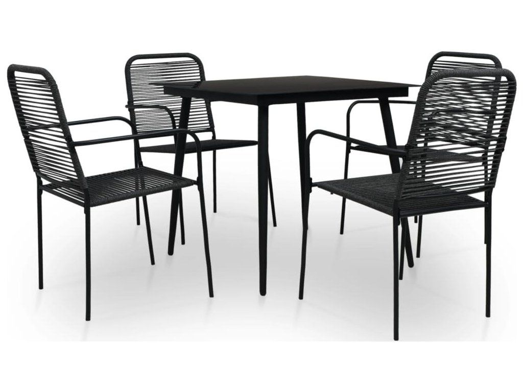 5dílný zahradní jídelní set bavlněné provázky a ocel černý [3058276]
