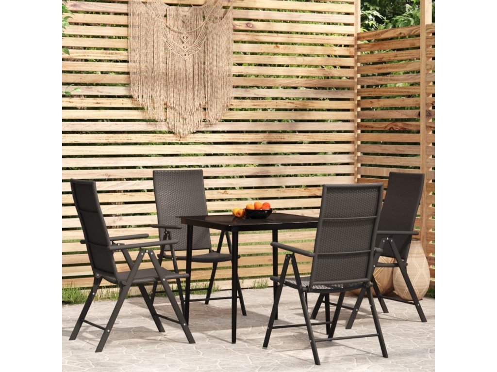 Tento zahradní jídelní stůl je vyrobený z ocelového rámu s práškovým povlakem, takže je robustní a stabilní pro každodenní venkovní použití. Hladká skleněná stolní deska se snadno čistí vlhkým hadříkem. Navíc se skvěle hodí k servírování jídla či pití a k vystavování různých dekorací. Židle na terasu jsou vyrobené z PE ratanu, takže jsou lehké a voděodolné. Opěradla židlí lze navíc sklopit do 7 různých poloh, takže snadno najdete polohu, ve které se vám bude sedět nejpohodlněji. Pokud židle právě nepoužíváte, můžete je složit, aby vám zbytečně nepřekážely.