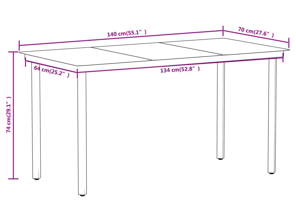 - Rozměry: 140 x 70 x 74 cm (D x Š x V)