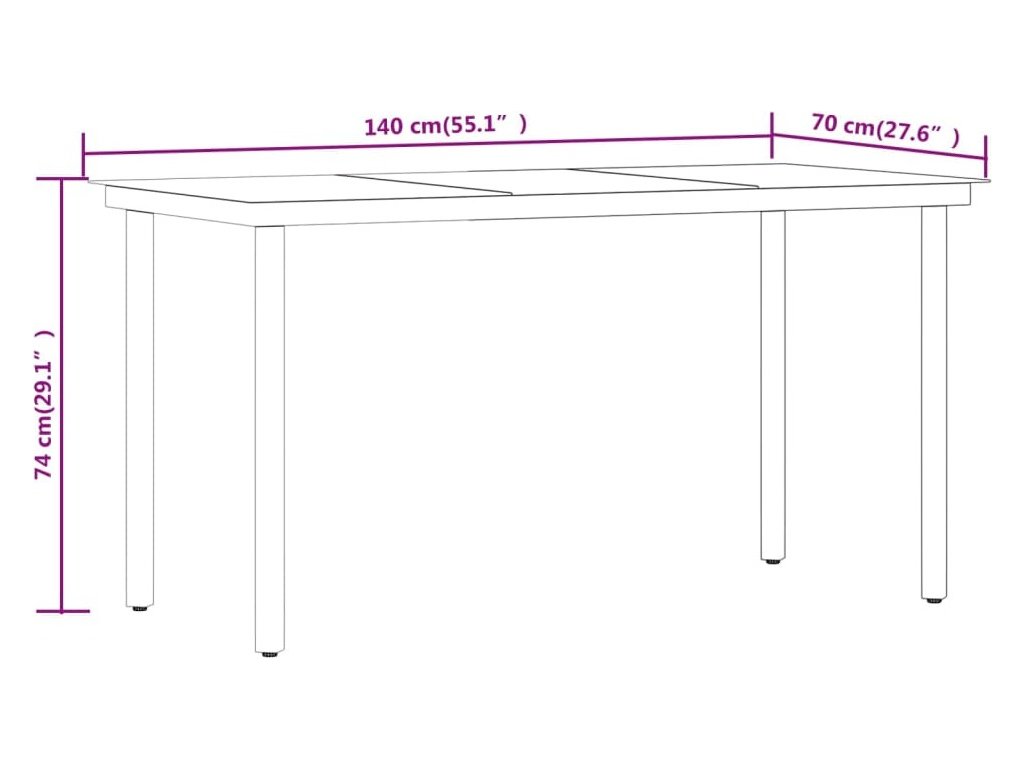 - Rozměry stolu: 140 x 70 x 74 cm (D x Š x V)