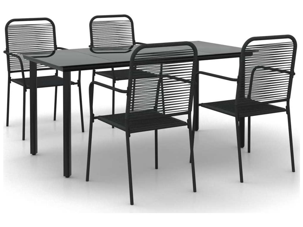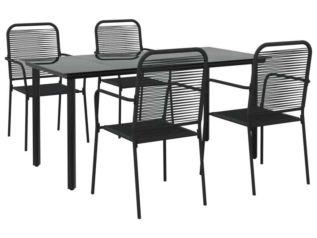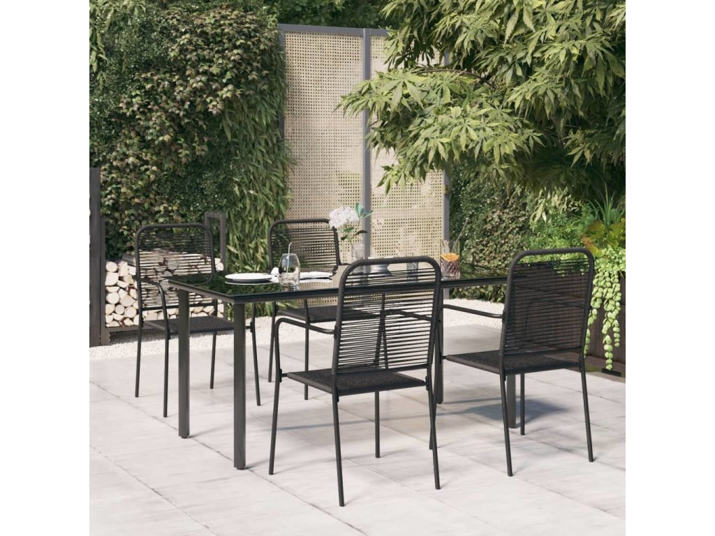 5dílný zahradní jídelní set černý bavlněné lano a ocel [3156536]