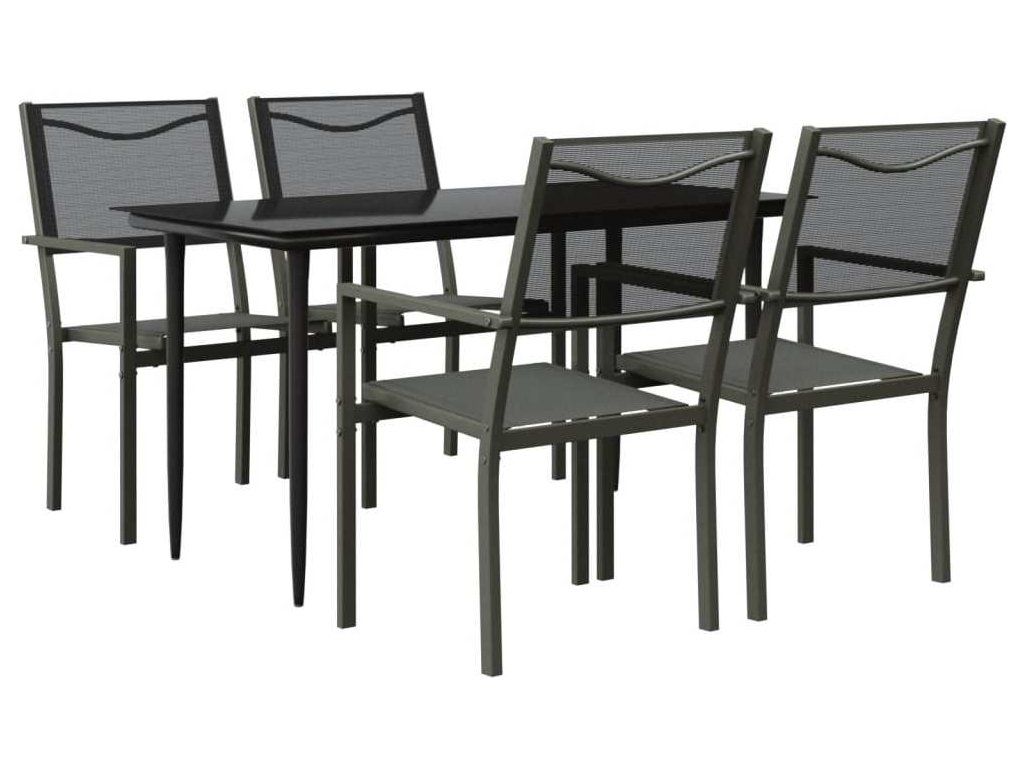 5dílný zahradní jídelní set černý ocel a textilen [3200720]