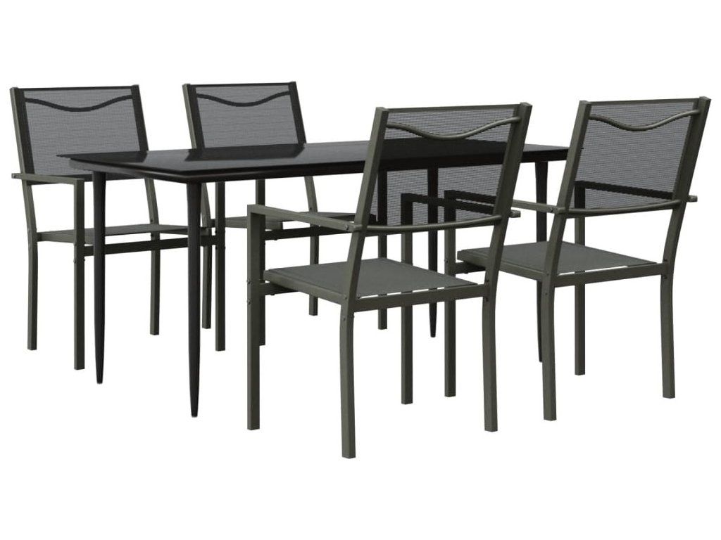 5dílný zahradní jídelní set černý ocel a textilen [3200722]