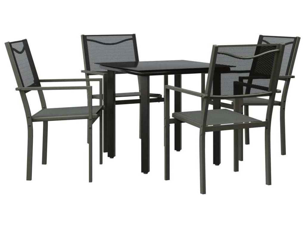 5dílný zahradní jídelní set černý ocel a textilen [3200727]