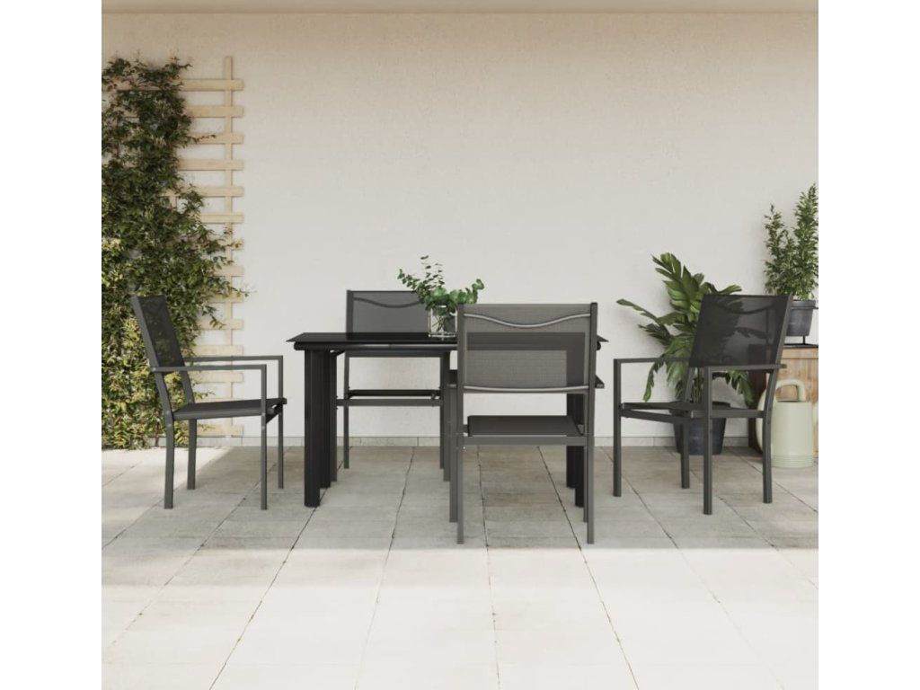 5dílný zahradní jídelní set černý ocel a textilen [3200728]