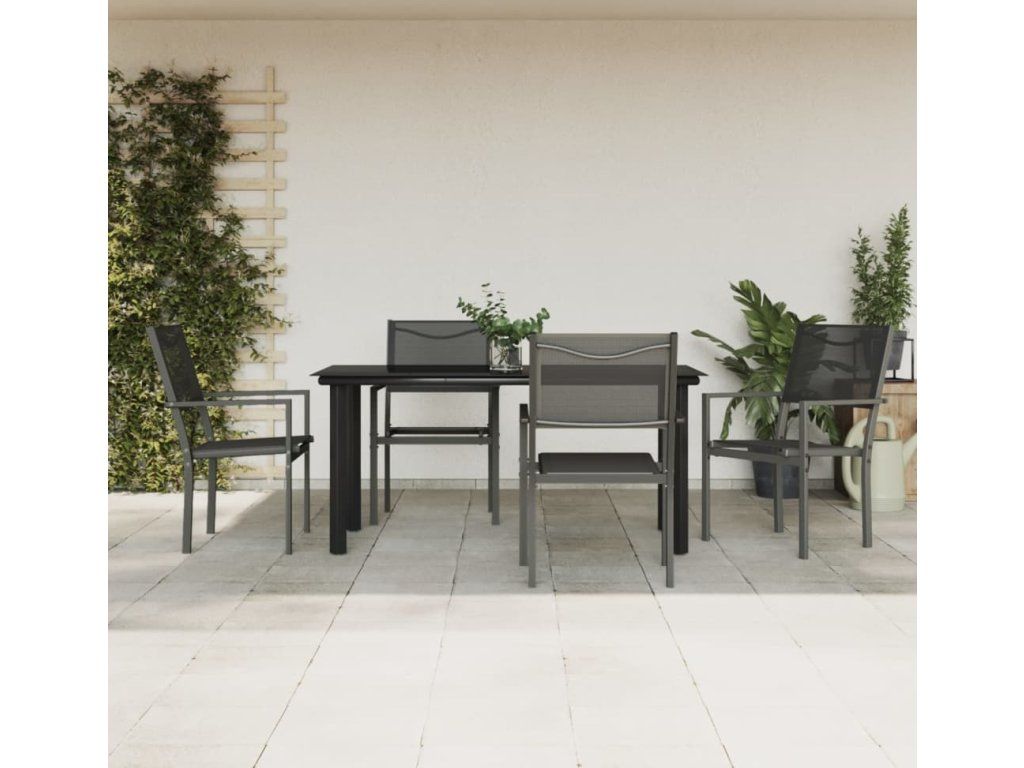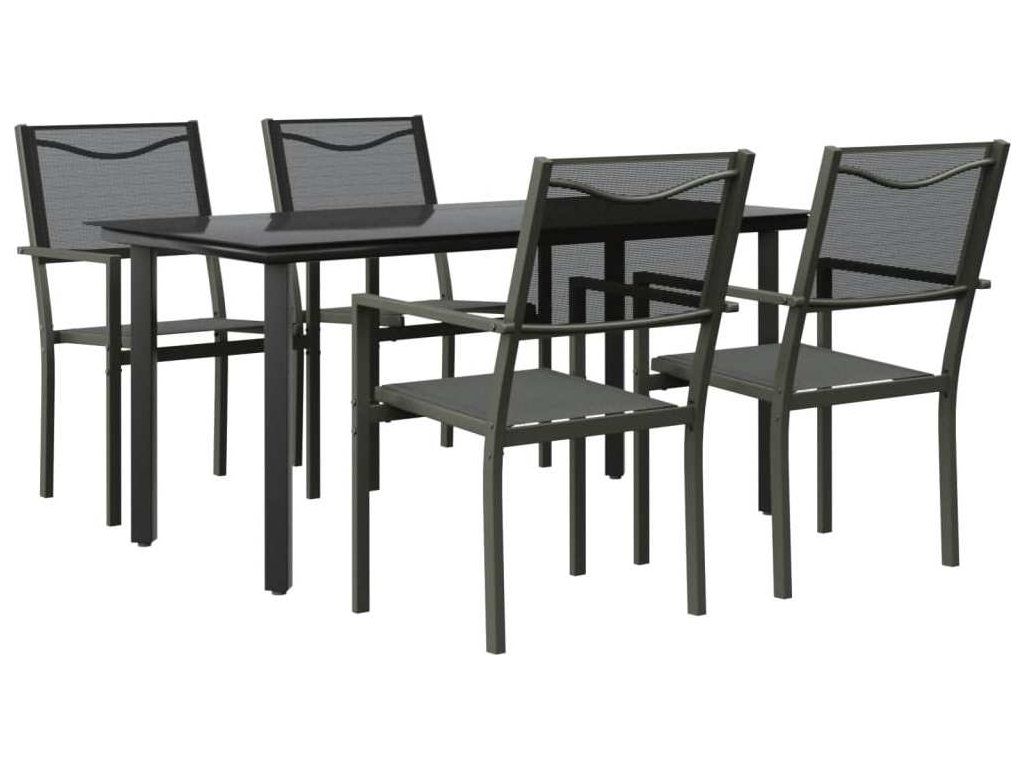 5dílný zahradní jídelní set černý ocel a textilen [3200730]