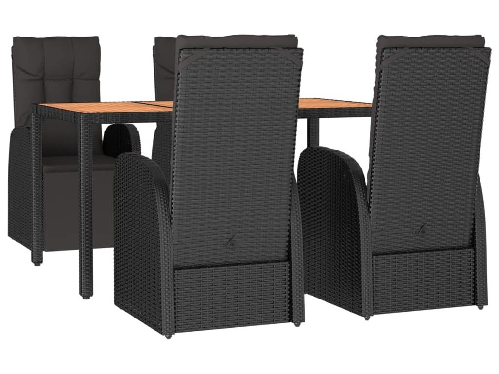 5dílný zahradní jídelní set černý polyratan a masivní akácie [3157608]