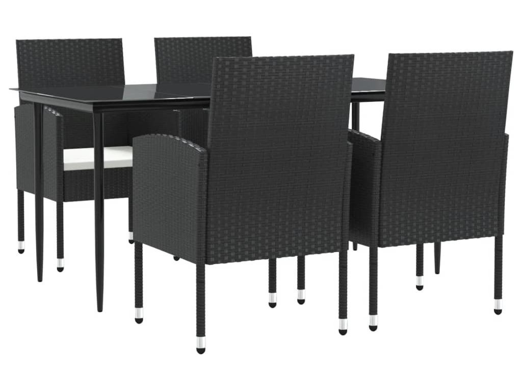 5dílný zahradní jídelní set černý polyratan a ocel [3203308]