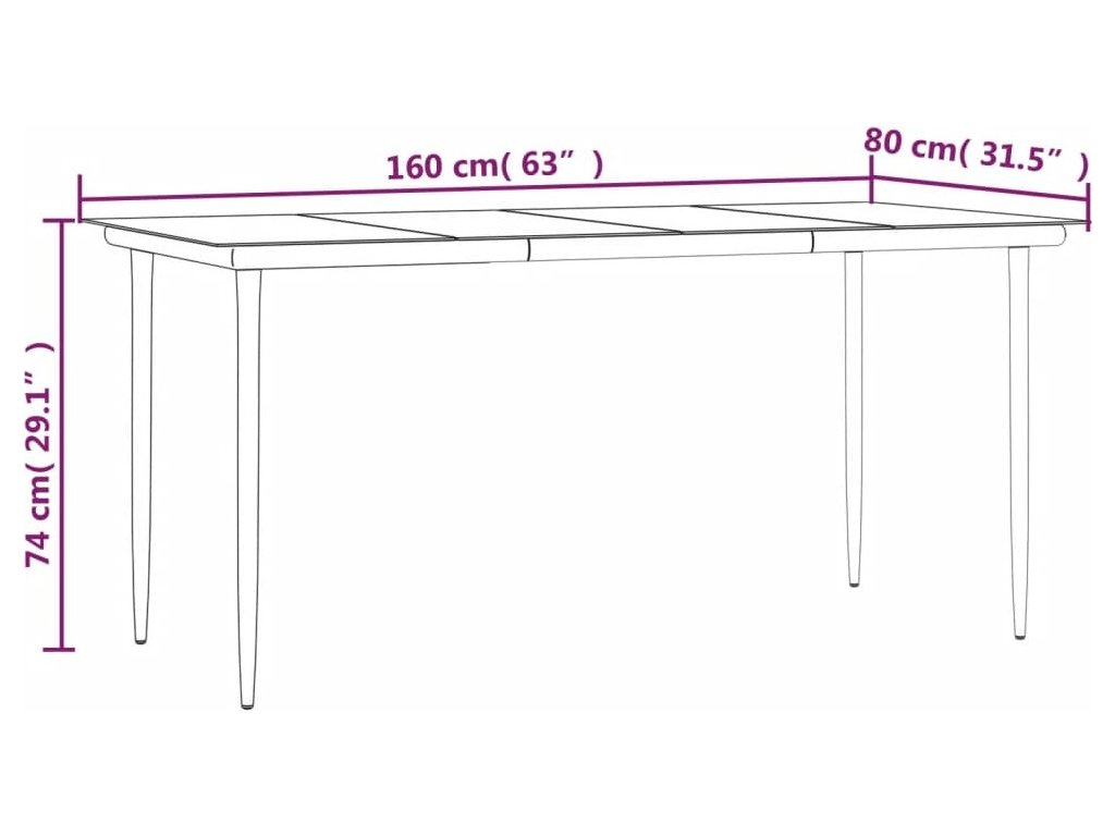 - Rozměry: 160 x 80 x 74 cm (D x Š x V)