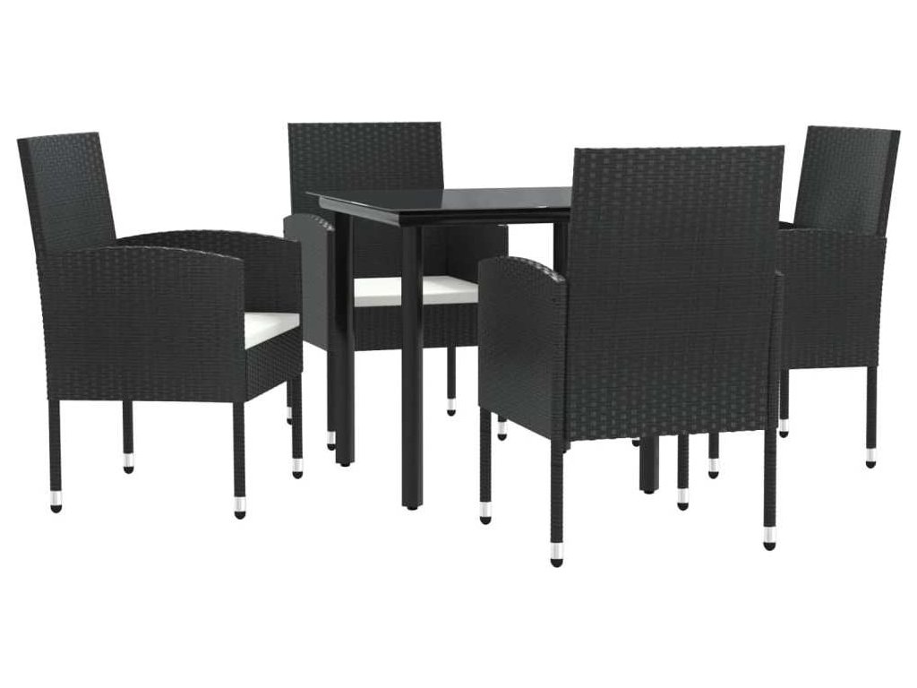 5dílný zahradní jídelní set černý polyratan a ocel [3203313]