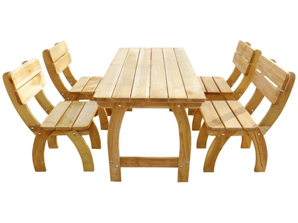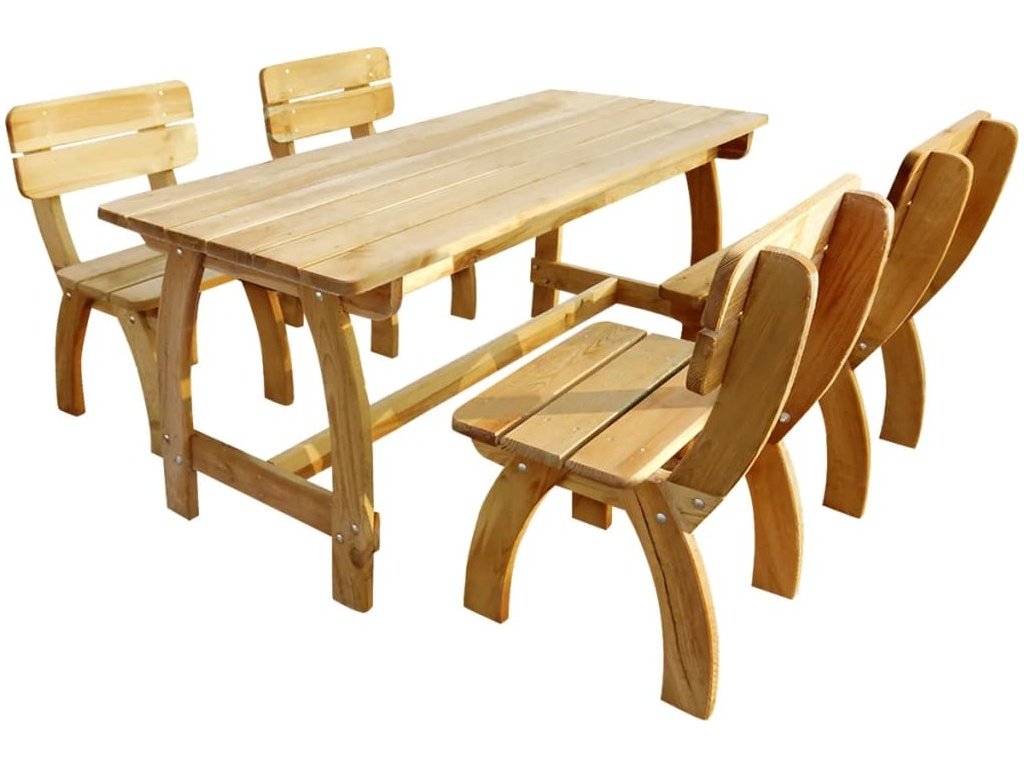 Tento set dřevěného zahradního nábytku je vyroben z vysoce kvalitního borového dřeva se zelenou impregnací, takže je velmi robustní, odolný a rezistentní vůči hnilobě.