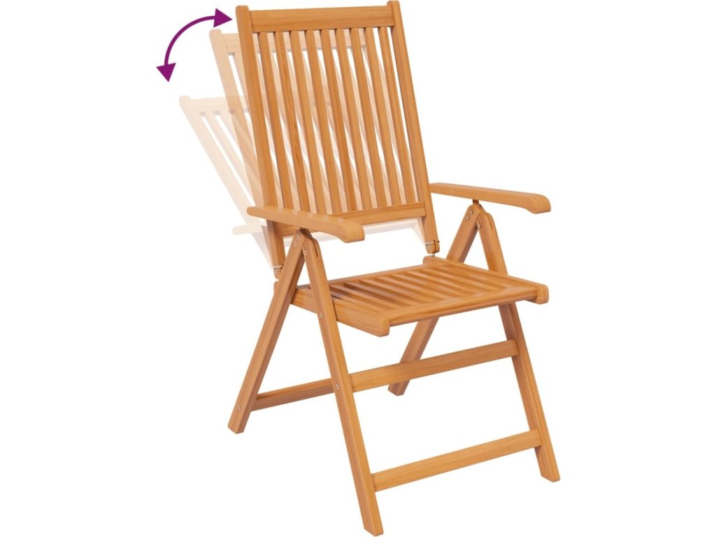 - Nastavitelná a skládací židle: Zahradní židli lze nastavit do 5 poloh, a tak vám při sezení zajistí optimální pohodlí. Pokud jídelní židle právě nepoužíváte, můžete je složit, aby vám zbytečně nepřekážely.