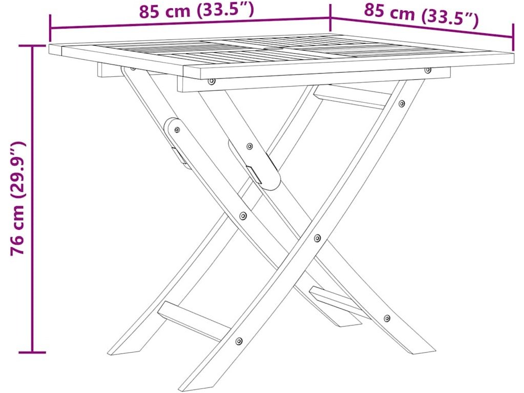 | Rozměry stolu: | 85 x 85 x 76 cm (D x Š x V) |