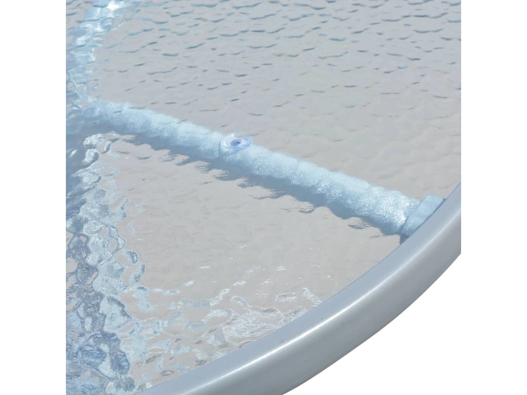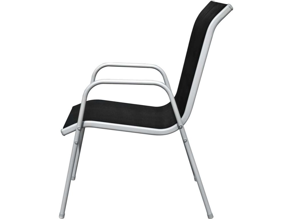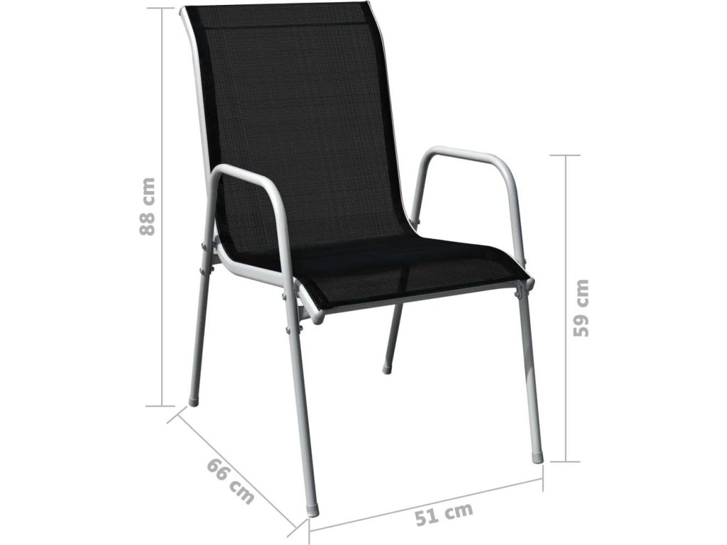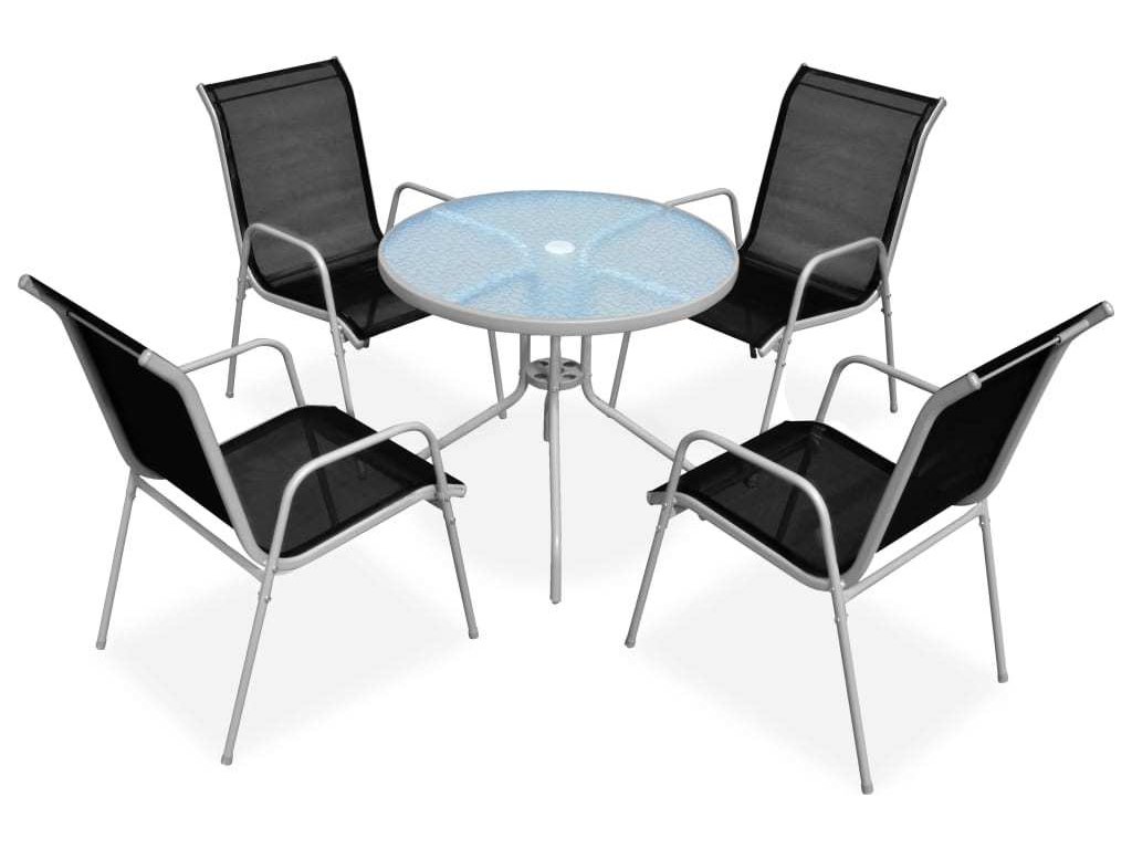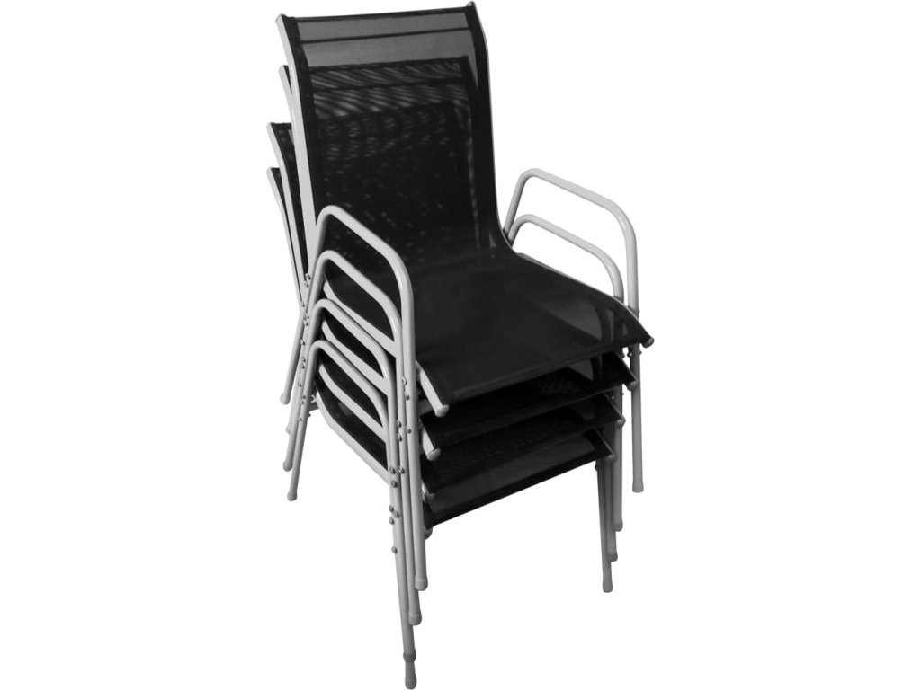 Komfortní židle jsou vyrobeny z kvalitní oceli s práškovým nástřikem. Díky silné textilní látce jsou naše židle odolné vůči počasí a snadno udržovatelné. Židle jsou stohovatelné, aby jste ušetřily místo. Stůl má desku o tloušťce 5 mm, vyrobenou z tvrzeného zvlněného skla, na kterou můžete umístit nápoje, občerstvení nebo dekorativní předměty. Má také robustní ocelový rám s práškovým nástřikem, který je odolný a snadno se udržuje. S otvorem na slunečník uprostřed stolu, jak na vrchu stolu, tak i pod ním, můžete tedy snadno umístit velký baldachýn pro vytvoření stínu během horkého léta. Jeho montáž je také velmi snadná.