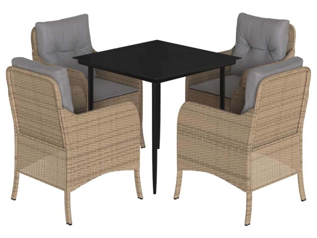 5dílný zahradní jídelní set s poduškami béžový polyratan [3211977]