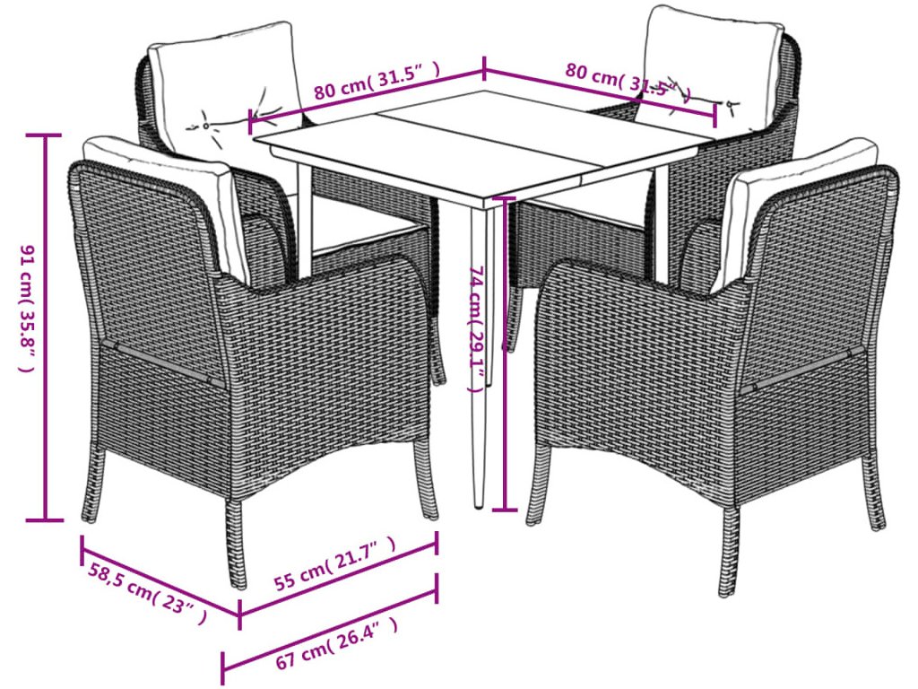 - Rozměry: 80 x 80 x 74 cm (D x Š x V)