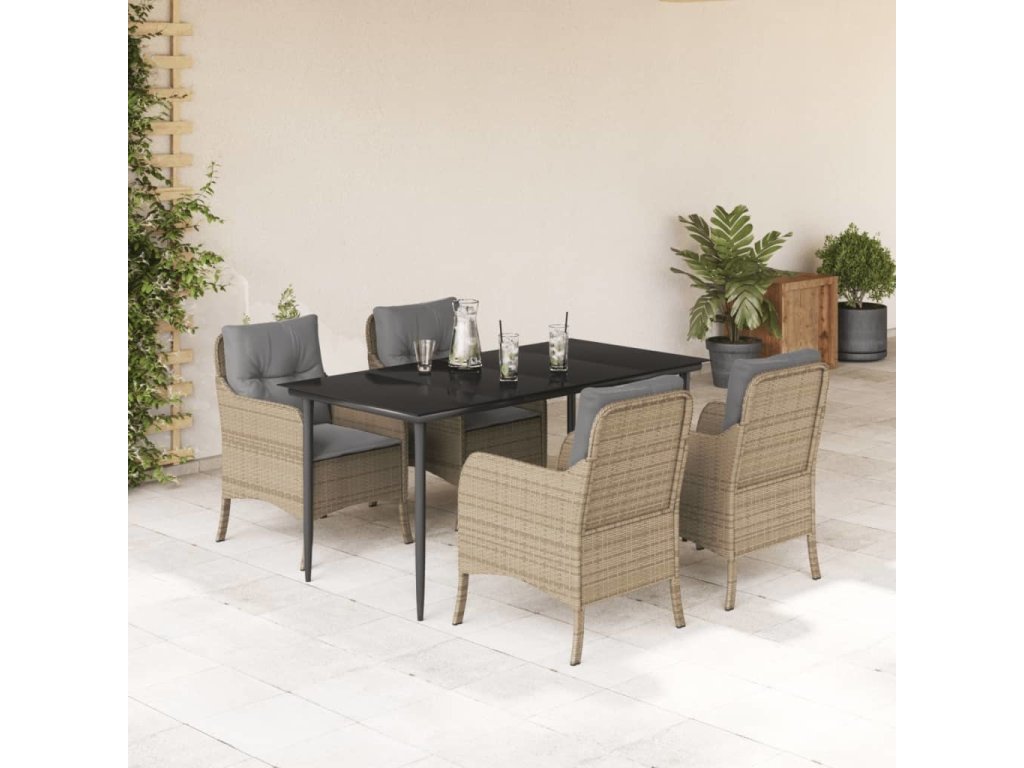 5dílný zahradní jídelní set s poduškami béžový polyratan [3211979]