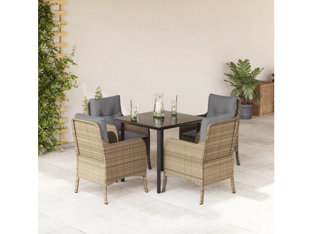 5dílný zahradní jídelní set s poduškami béžový polyratan [3211984]