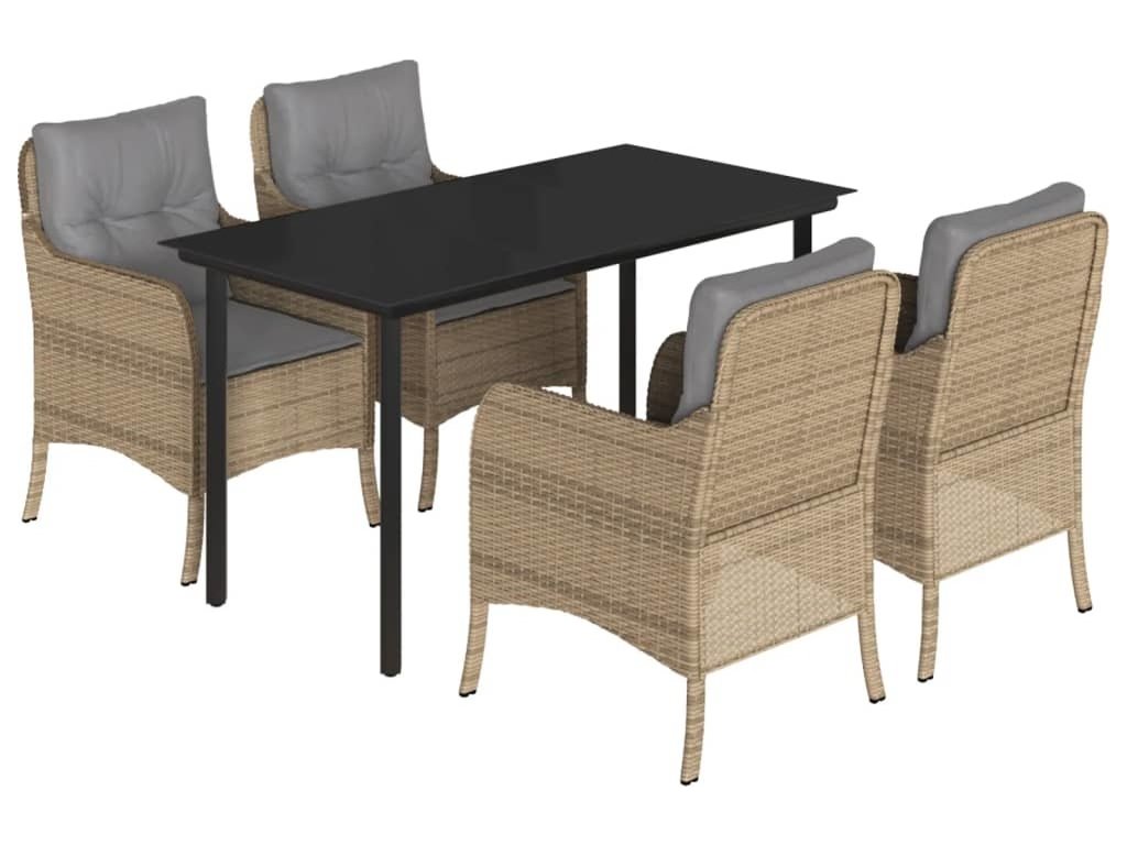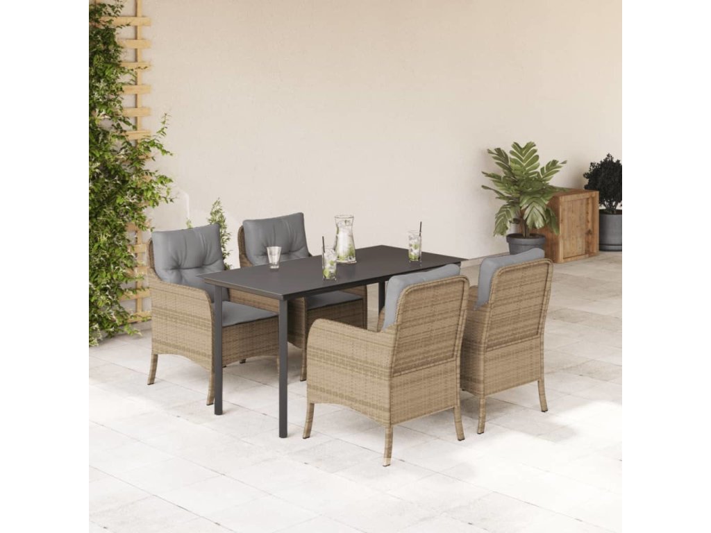 5dílný zahradní jídelní set s poduškami béžový polyratan [3211985]