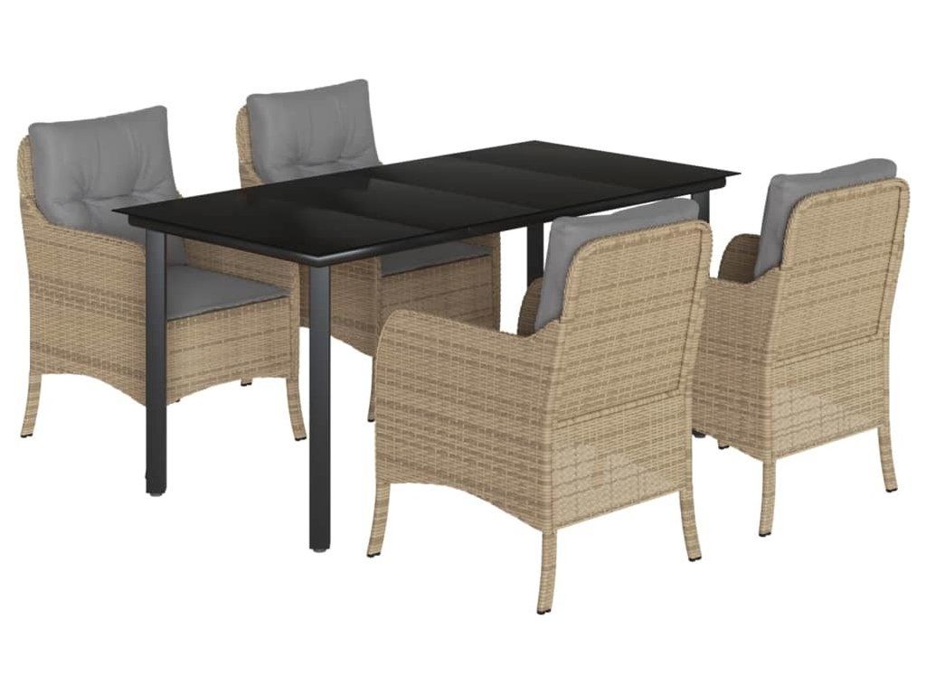 5dílný zahradní jídelní set s poduškami béžový polyratan [3211986]
