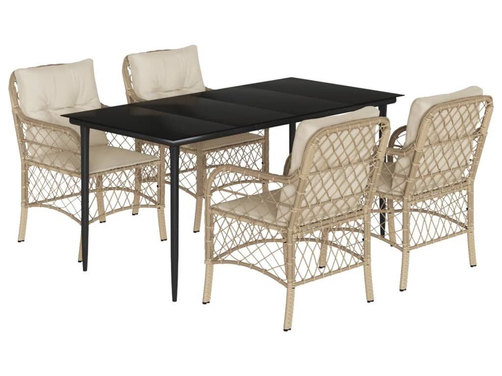 5dílný zahradní jídelní set s poduškami béžový polyratan [3212141]