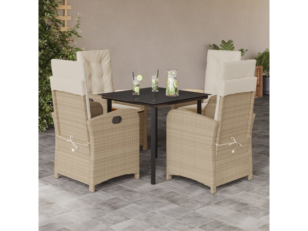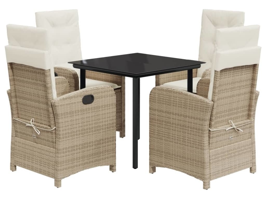 5dílný zahradní jídelní set s poduškami béžový polyratan [3212381]