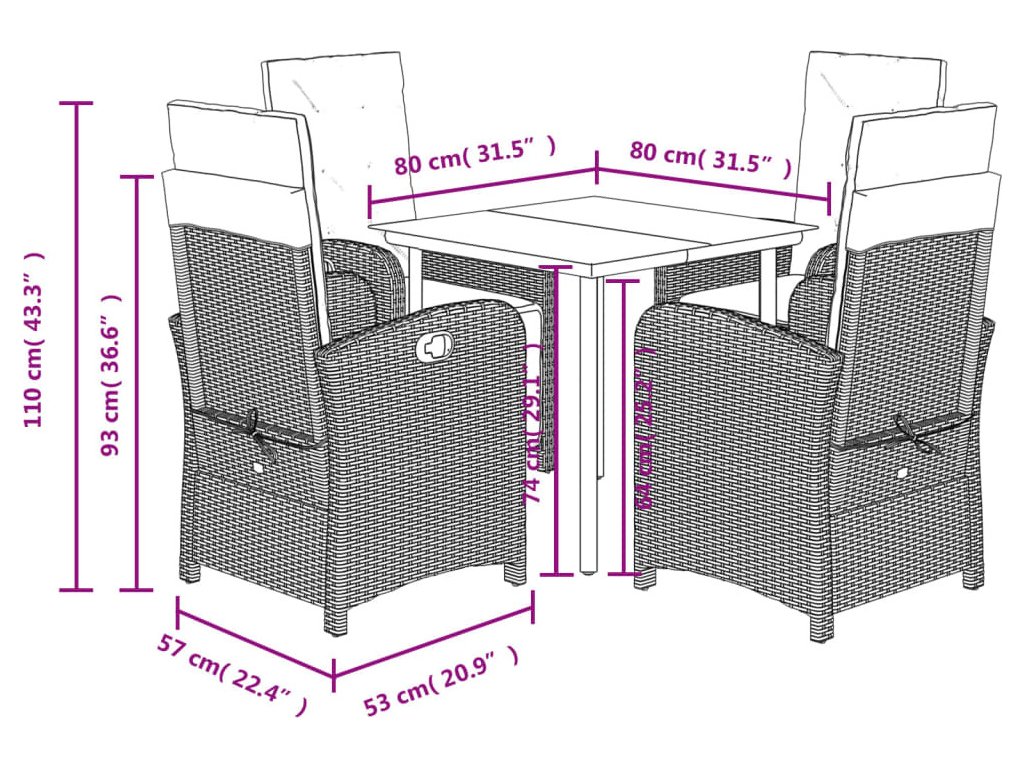 - Rozměry: 80 x 80 x 74 cm (D x Š x V)